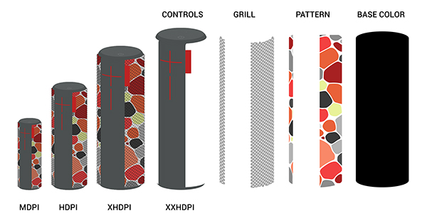 To save on the cost and logistics issues associated with product photography, I developed a 2D modular visual system for the device renderings. I created layered product mockups in Adobe Photoshop whose colors and patterns could be replaced as needed, allowing us to add new product representations to the app at any time with a consistent visual appearance.